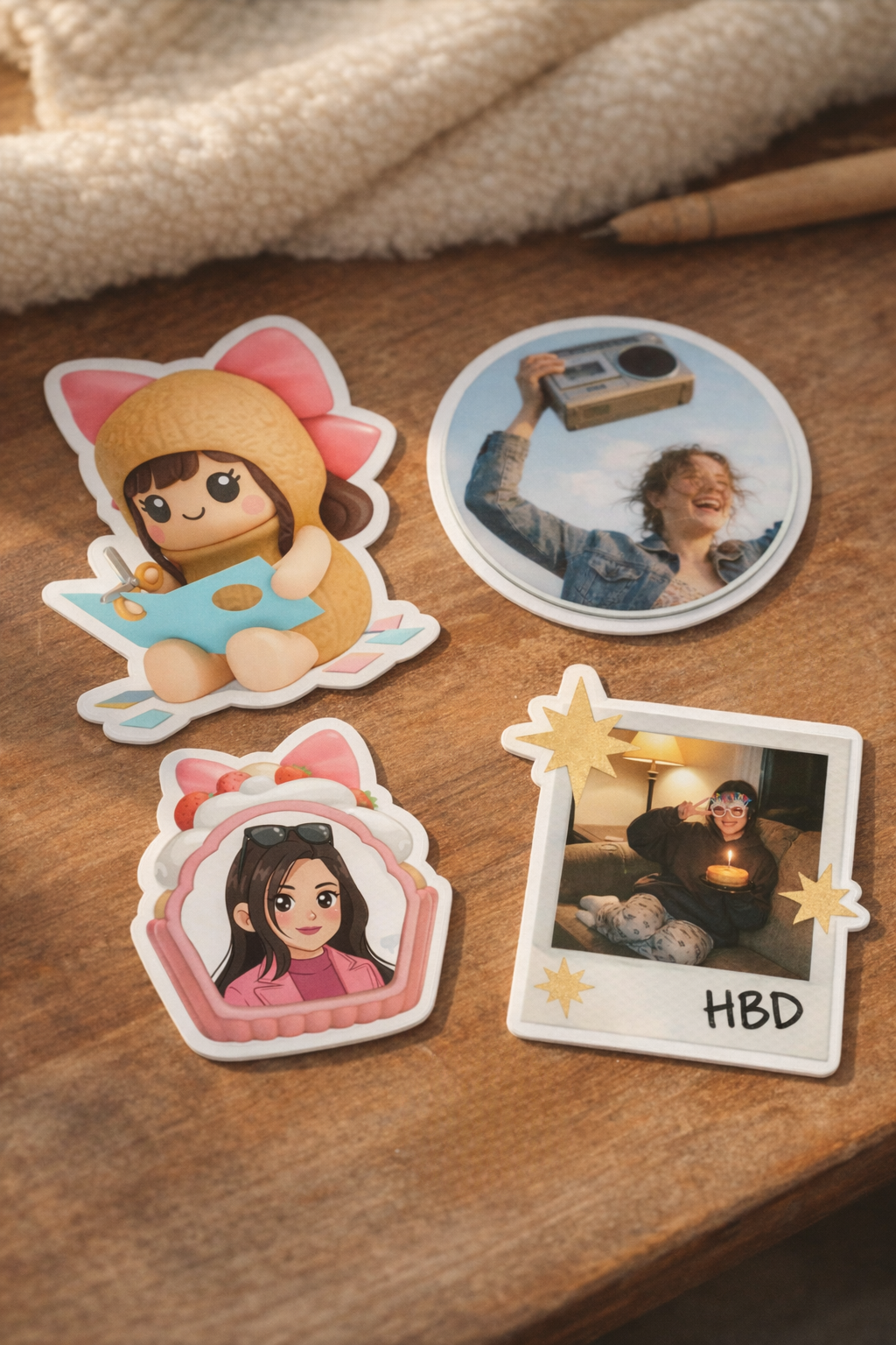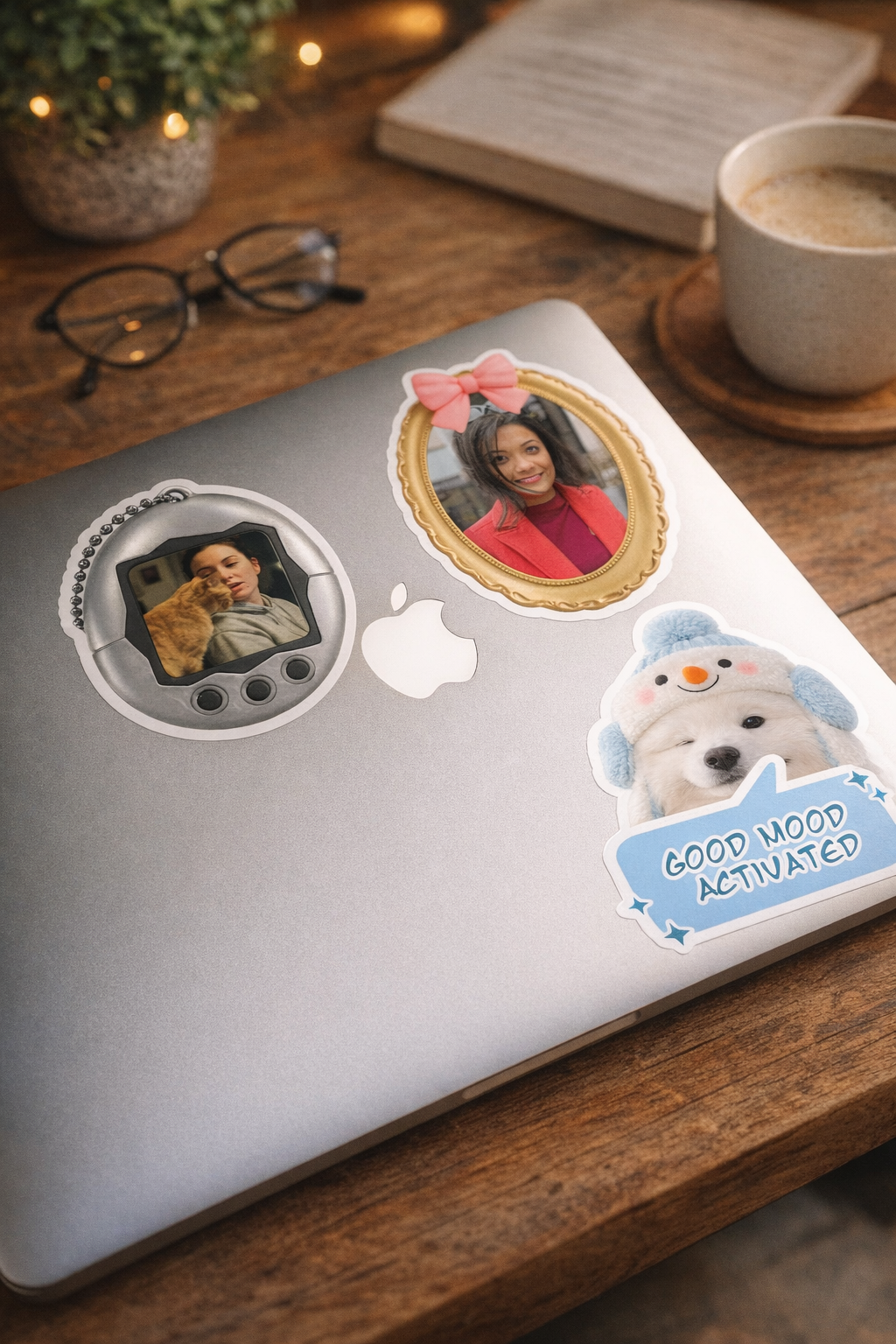 It really is as easy as "pick a photo, get a sticker." Choose a photo, pick a template, let our AI gently refine it, or use your photo as-is. You will preview your sticker before checkout, then we will print it on high-quality material and ship it straight to you.